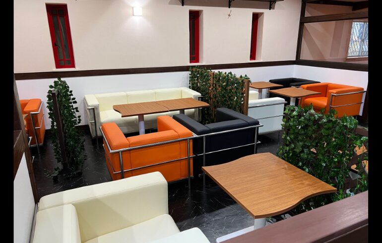 ソファー席エリアと室内で遊べるリードフリーエリア有